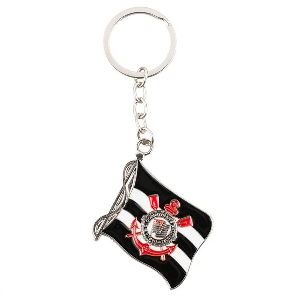 Mostre sua paixão pelo Timão com o Chaveiro Bandeira Corinthians, um acessório oficial e resistente em metal.
