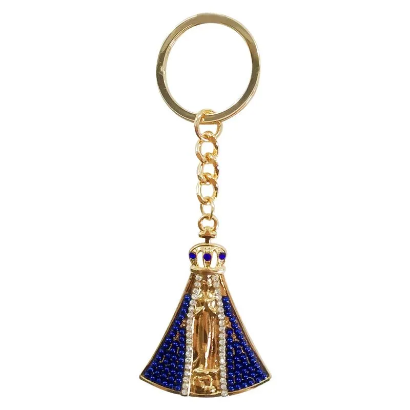 Leve a fé e a proteção de Nossa Senhora Aparecida sempre com você neste elegante chaveiro de metal.