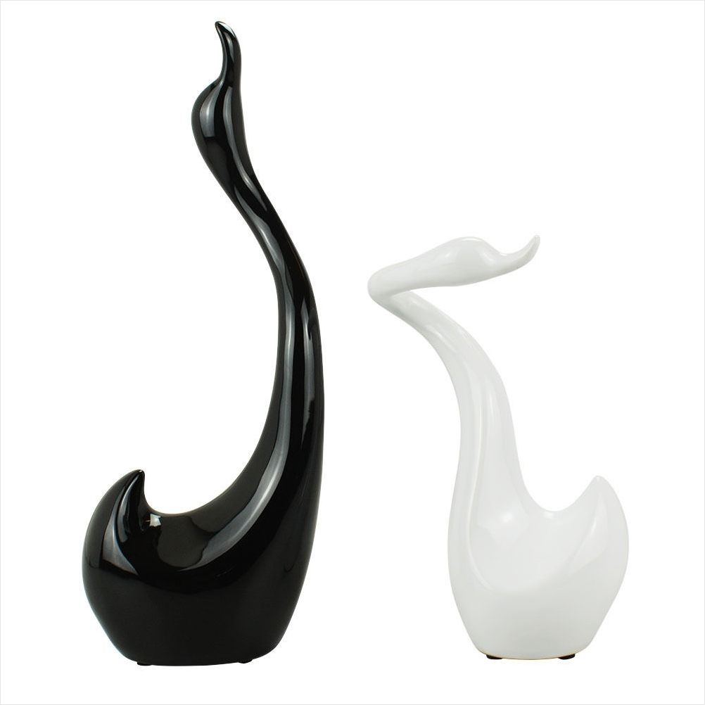 Este deslumbrante enfeite de cerâmica da IMPORIENTE apresenta um design exclusivo com dois cisnes de pescoços entrelaçados, simbolizando amor e união. Um cisne na cor preta com 22,5 cm de altura e outro branco com 16,5 cm de altura, criam um contraste visual sofisticado. Fabricado em cerâmica de alta qualidade, é uma peça de decoração moderna perfeita para enriquecer ambientes como sala de estar, quarto ou escritório, sendo também um presente ideal para ocasiões especiais.
