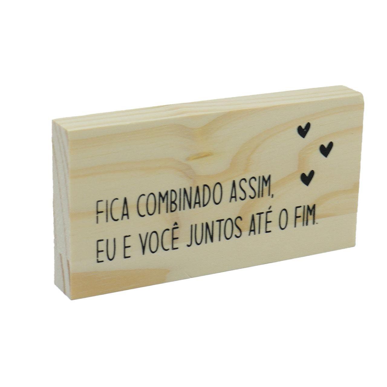 - Com acabamento rústico, fases da Lua frase "Fica Combinado Assim, Eu e Você Juntos até o Fim";
