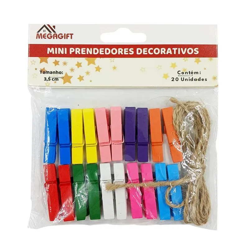 Adicione um toque de charme e criatividade aos seus projetos e decorações com este versátil Jogo de Mini Prendedores Megagift.