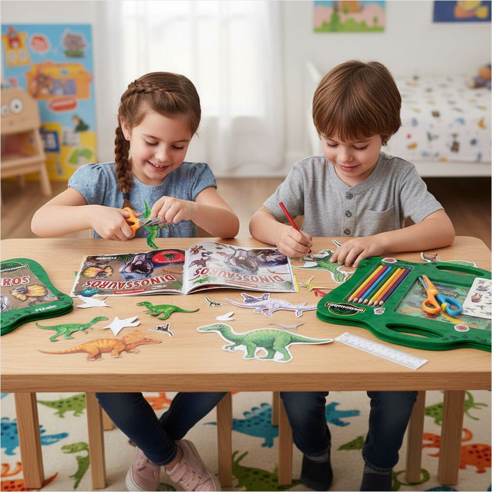 Horas de diversão educativa: Permite que as crianças criem seu próprio universo de dinossauros, unindo aprendizado e entretenimento.
