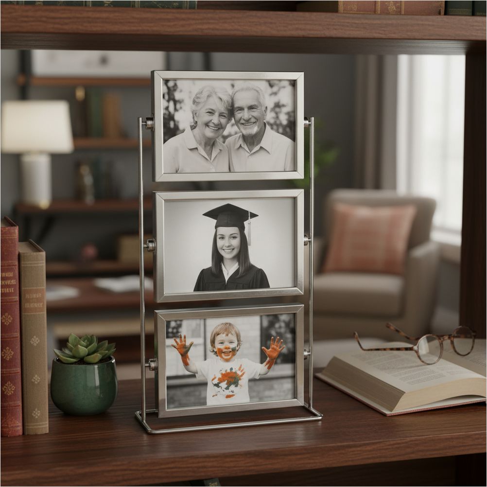 Capture e exiba seus momentos especiais com o Porta Retrato Giratório Sanxia, um item de decoração elegante e funcional para qualquer ambiente.