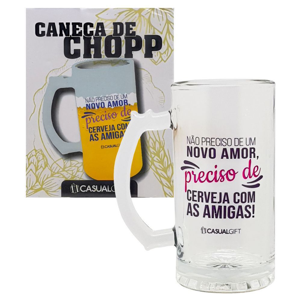CANECA DE VIDRO TRANSPARENTE PARA CERVEJA 480 ML COM A FRASE" NÃO PRECISO DE UM NOVO AMOR, PRECISO DE CERVEJA COM AS AMIGAS"