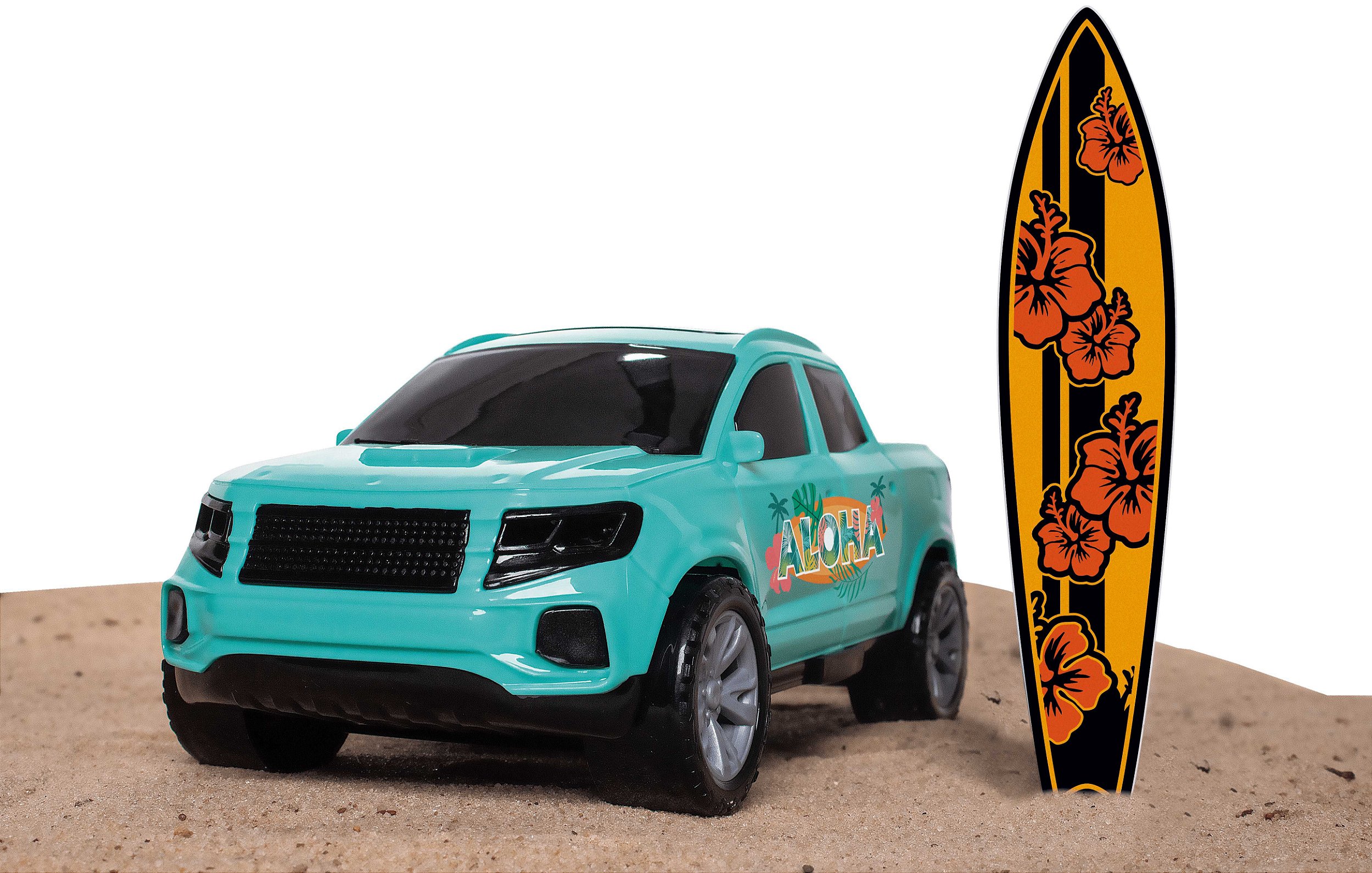Pick-up Super Surf Vem com uma super prancha!!! Idade Recomendada: Acima de 3 anos AS CORES PODEM VARIAR DE ACORDO COM A DISPONIBILIDADE. Carrinho é um dos brinquedos preferidos da garotada de todas as idades. Engana-se, quem acha que são indicados apenas para os meninos, pois as meninas também adoram e podem se beneficiar com a brincadeira. A ideia de desafiar os limites de velocidade com a imaginação e toda a aventura por trás da diversão são os elementos que fazem os carros tão irresistíveis. Embora pareça uma simples distração, você sabia que brincar de carrinho estimula as várias inteligências da criança e os valores éticos e morais? Pois é isso mesmo! Divertir-se com os carros ajuda a desenvolver habilidades motoras finas, entender as relações espaciais, reconhecer formas e cores, aprender a relação de causa e efeito e trabalhar a imaginação e a cognição. Além disso, a criança se interessa mais pelo ambiente e pelas pessoas, facilitando a socialização e ficando mais esperta e espontânea. Tudo isso ajuda em seu desenvolvimento. DADOS TÉCNICOS Referencia: 0031 Caixa Master: 12 Unidades Embalagem: 1 Unidade Composição: Plástico Dimensão da embalagem: 16x26x12cm Dimensão do Produto: 19cm Código de barra: 7898631555975 ITENS INCLUSOS 1 Carro 1 Prancha